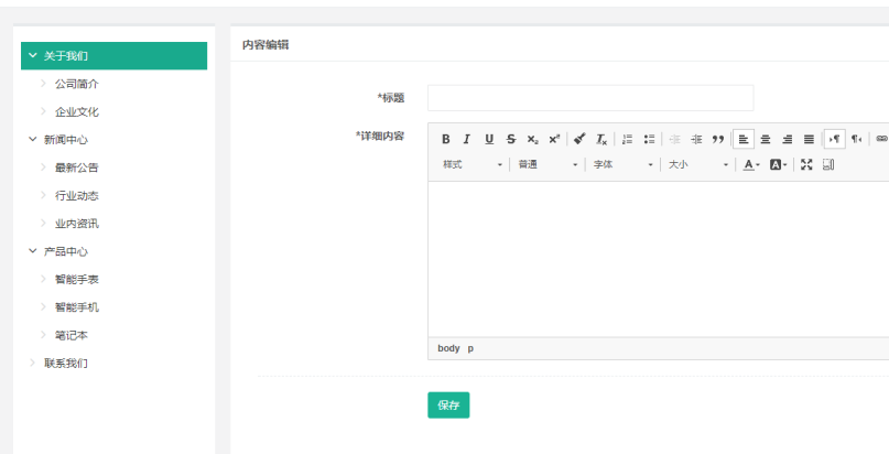 我们在配置的内容的时候单页就只有标题跟详情内容,这里就要配合我们的单页插件使用